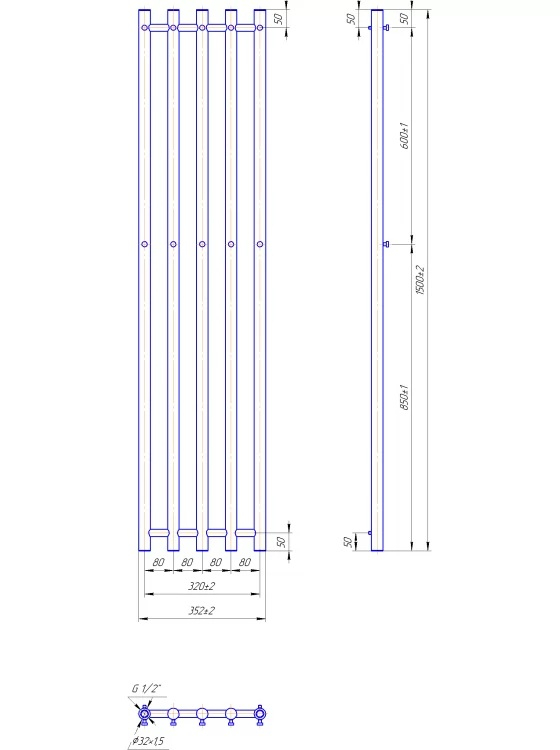 Виріб виготовлений із полірованої нержавіючої сталі без хромування, що гарантує високу стійкість до вологи та корозії. Габарити рушникосушарки — 1500×350×110 мм, міжцентрова відстань підключення — 320 мм, стандартний діаметр — G1/2". Передбачено нижнє та діагональне підключення, що дозволяє легко адаптувати модель до будь-якої системи опалення.