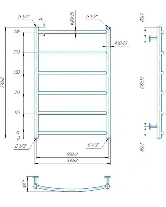 Водяна рушникосушарка INOX Класік HP 770х530/500 з міжцентровою відстанню для підключення 500 мм, діаметр підключення G 1/2'' складається з 6 ребер. Рушникосушарка Класік HP заводу-виробника Mario виготовлена з нержавіючої сталі АІSI 304. Рушникосушку можна обладнати електричним ТЕН-ом, таким чином, перетворивши її з водяної в електричну або скомпонувати в комбіновану. Більш детальну інструкцію по переобладнанню рушникосушки уточнюйте у продавця.