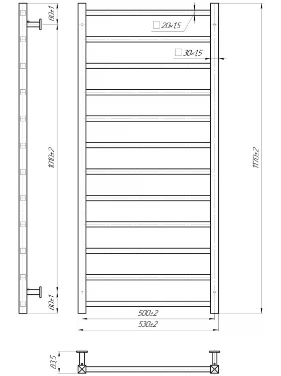 Водяна рушникосушка Токіо 1170х530 з міжосьовою відстанню для підключення 500 мм, діаметр підключення G 1/2'' складається з 12 ребер. Сушарка для рушників Токіо виробничого підприємства Mario виготовлена з європейської нержавіючої сталі АІSI 304. Рушникосушка виконана в класичному стилі в основі якої лежать квадратні форми (труба квадратного профілю). Стильна рушникосушка, яка стане прекрасою будь-якої ванної кімнати.