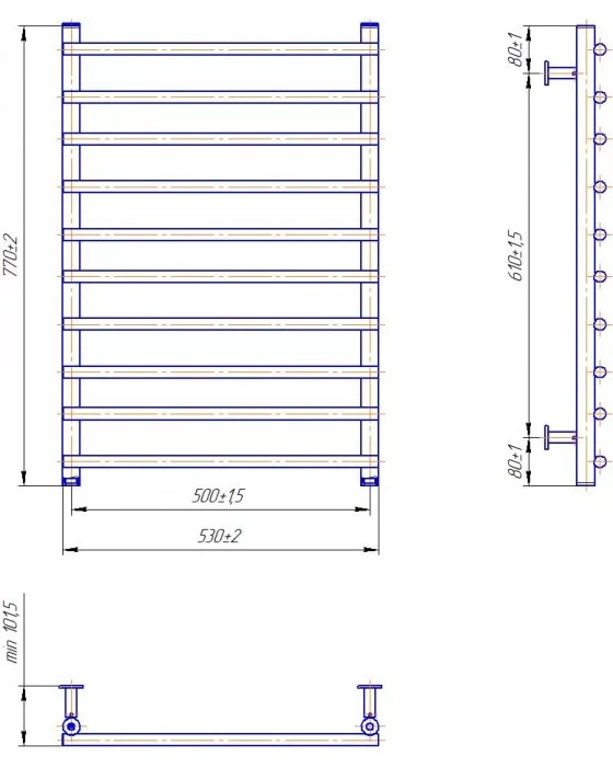 Водяна рушникосушка INOX Турин 770х530/500