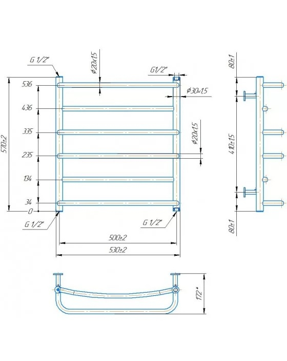 Водяной полотенцесушитель INOX Люкс 570х530/500