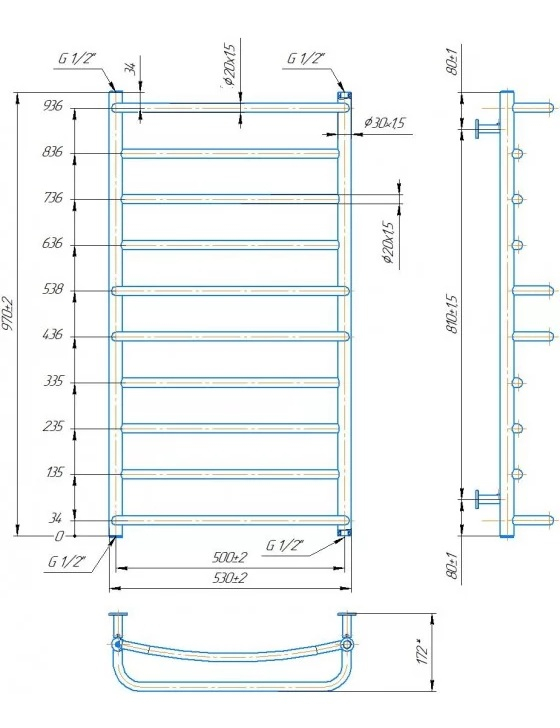 Водяной полотенцесушитель INOX Люкс 970х530/500
